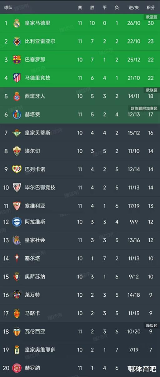 比利亚雷亚尔主场同样收获大胜,4-0完胜巴列卡诺,上半场赫拉德-莫雷诺的进球打破僵局,下半场黄潜在第56分钟-第65分钟连入3球,莫莱罗、科梅萨尼亚和阿约塞-佩雷斯建功。黄潜以7胜2平2负积23分,反超巴萨1分,暂时排在第2名。巴列卡诺的积分停留在14分暂列第9名。